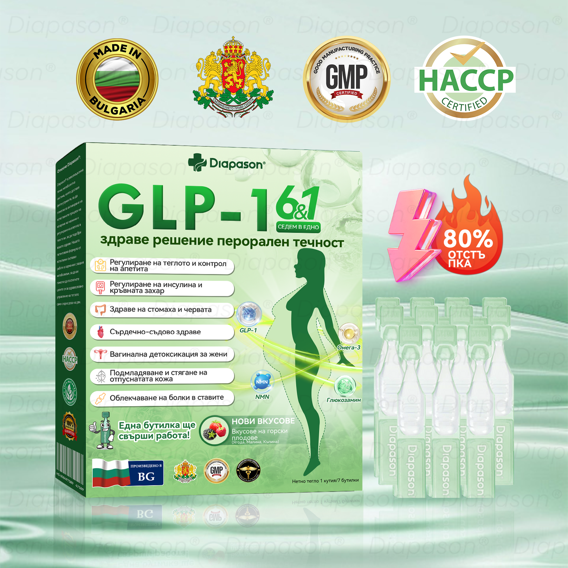 𝐃𝐢𝐚𝐩𝐚𝐬𝐨𝐧® 𝐺𝐿𝑃-1 Седем в едно здраве решение перорален течност е разработен от екип от над 30 международни експерти по ендокринология и диабетология след над 3 години изследвания. Той комбинира Тирзепатид с мощни билкови съставки, за да стимулира метаболизма, да ускори изгарянето на мазнини и да подпомогне храносмилателното и лимфното здраве. Този перорален разтвор е сертифициран за безопасност и ефективност от Българската агенция по храните и лекарствата (BDA), предоставяйки научно обосновано решение за отслабване и цялостно благополучие.